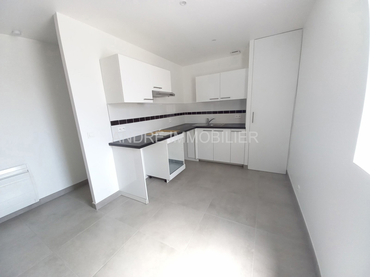 L'appartement est un bien de 3 pièces dans un immeuble de 2021, comprenant une entrée donnant sur un séjour avec cuisine ouverte, aménagée, 2 chambres avec placard, une salle de bains et un WC.